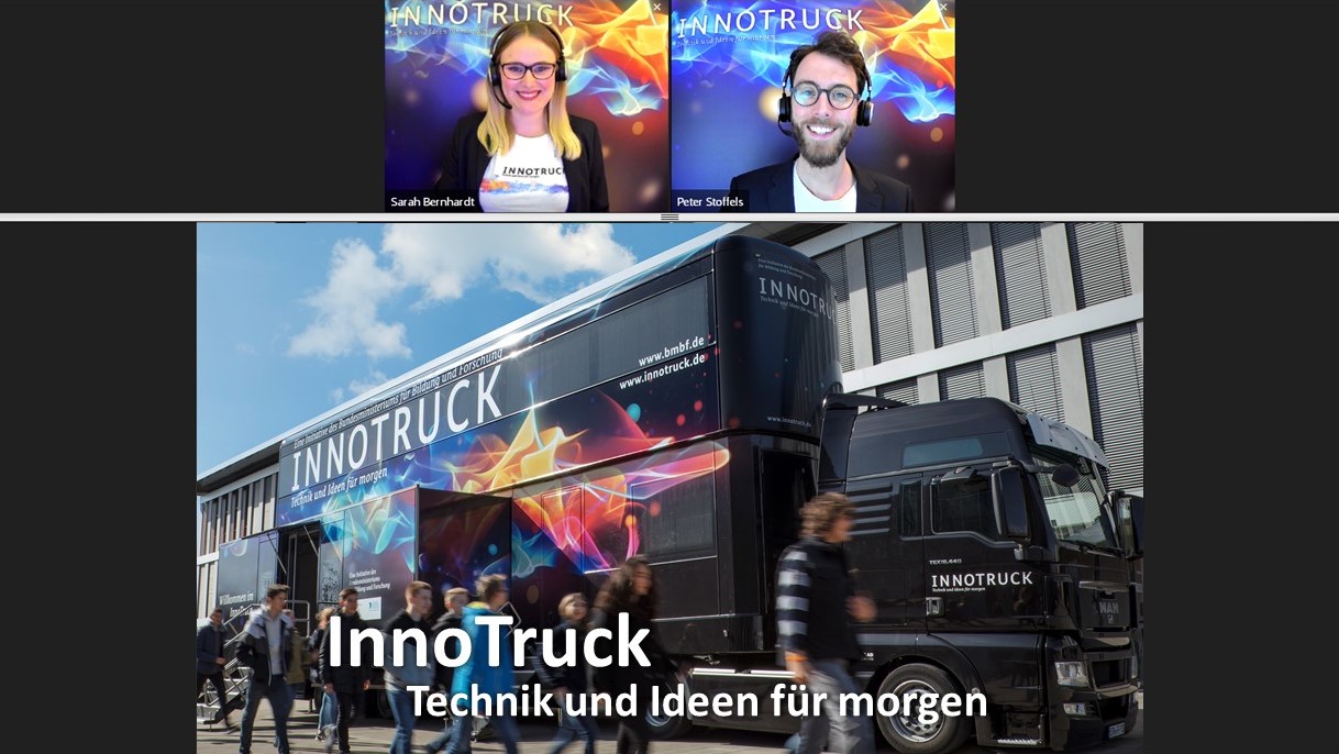 Die Informations- und Dialoginitiative InnoTruck bietet parallel zur mobilen Ausstellung auch Online-Seminare über wichtige Zukunftsthemen und -technologien an. Das Angebot richtet sich an die interessierte Öffentlichkeit, kann aber ebenso von Lehrkräften für Schulklassen individuell gebucht werden. Weitere Informationen zu den Online-Seminaren finden Sie nachfolgend.