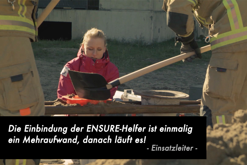 Bei Unwettern, Überschwemmungen oder anderen Katastrophen wird jede helfende Hand gebraucht. Um freiwillige Helferinnen und Helfer besser koordinieren zu können, wurde in einem Forschungsprojekt die Handy-App ENSURE entwickelt und getestet. 2016 führte die Berliner Feuerwehr hierzu einen Feldversuch durch.