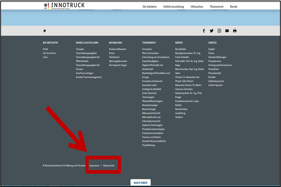 Im Impressum können Sie sich zum Beispiel informieren: