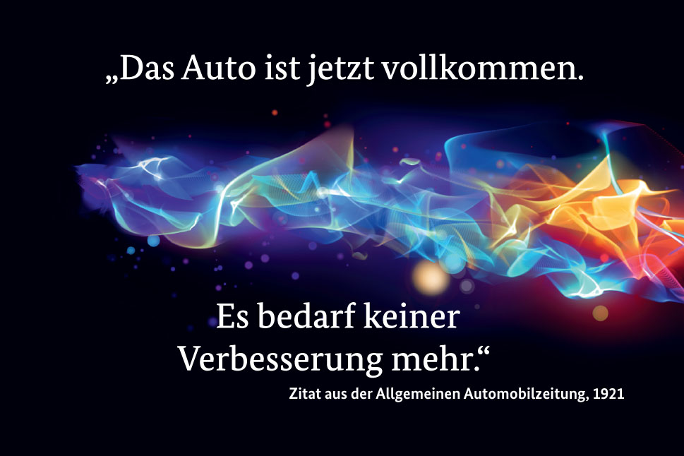 Sieben Postkartenmotive mit unterschiedlichen Zitaten zeigen, dass der Nutzen und die Bedeutung von Innovationen auch schon in der Vergangenheit unterschätzt wurden.