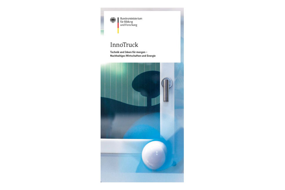 Ressourcenschonend, umweltfreundlich, sozialverträglich – Erforschen Sie die Facetten deutscher Nachhaltigkeitsinnovationen von der Straße über den Hausbau bis in Ihre Hand- oder Jackentasche. Der Flyer zeigt Beispiele aus dem InnoTruck.